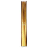 Long gold candles from Meri Meri. Add an instant touch of elegance to your festive cake with these stylish gold taper candles. The candles are very tall, creating an extra special effect. This set contains 12 candles.