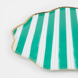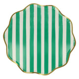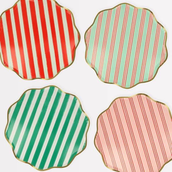 Festive striped plates from Meri Meri. These plates complete the party table. With a mix of traditional festive colours such as red and green, and a modern pop of pink and blue, you have the most cheerful and stylish plates in your home. These fantastic little plates, with beautiful wavy edges, are ideal for use at meals, parties or Christmas cocktail parties.