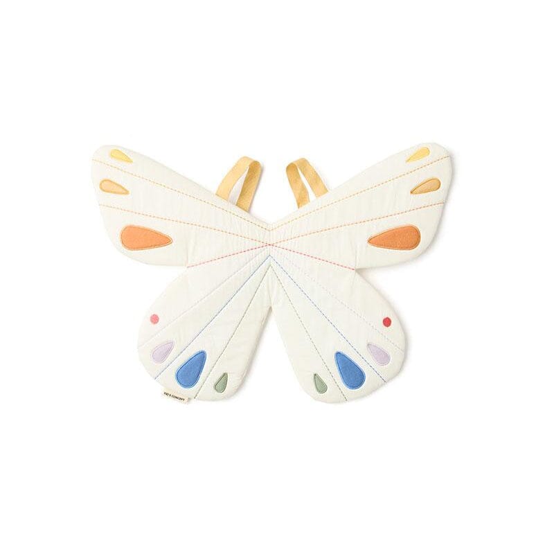 These butterfly wings are designed to be worn on the back with elastic shoulder straps, making dressing up easy and comfortable. The wings are padded to retain their shape during play, and the embroidered details add stability and texture.
