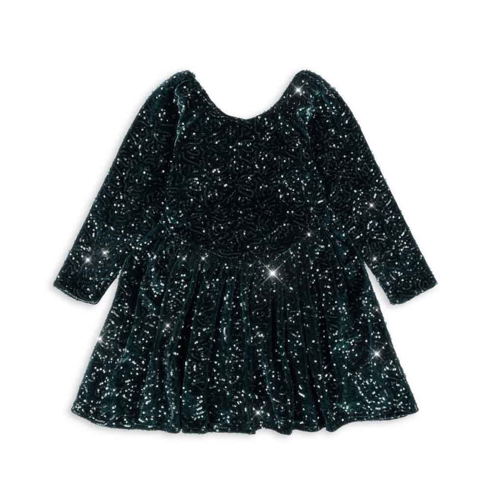 Viola dress in Sycamore colour by Konges Sløjd. This velvet dress with glitter is wonderfully soft and extra festive!