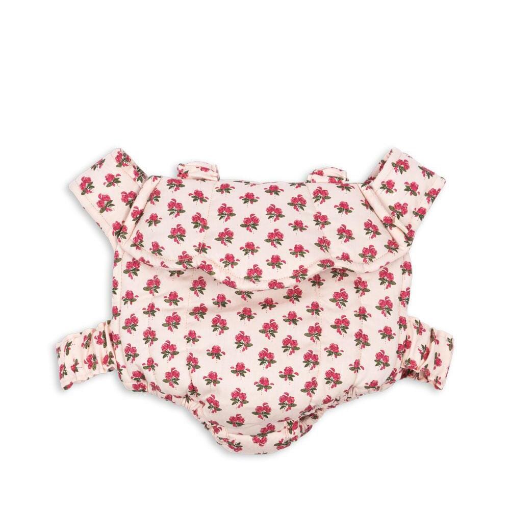 Doll carrier in the Rosie rose print by Konges Sløjd. This carrier is made from organic cotton and designed with elastic straps and scalloped edges.