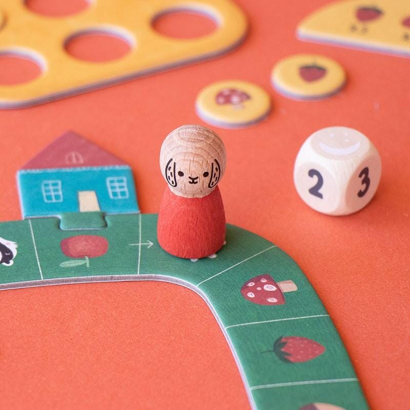 Pocket board game Strawberries by Londji. In a quiet corner of the forest, rabbits gather fruit before nightfall. But beware! A clever badger lurks around the corner to steal their food. Strawberries is a strategy game: be the first to fill your basket!