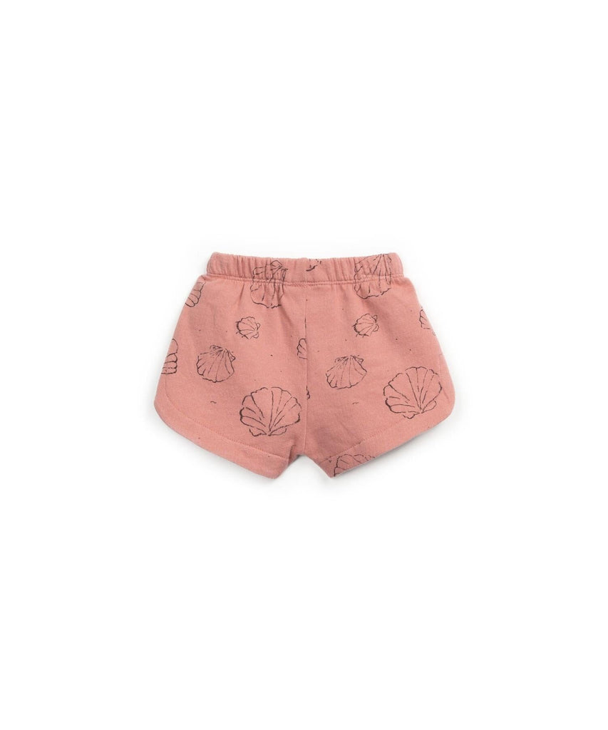 Jogging shorts in the color Coral from Play Up. These shorts are made from organic cotton jersey. This model features a round cut, an elastic waist with a decorative bow and shell print.
