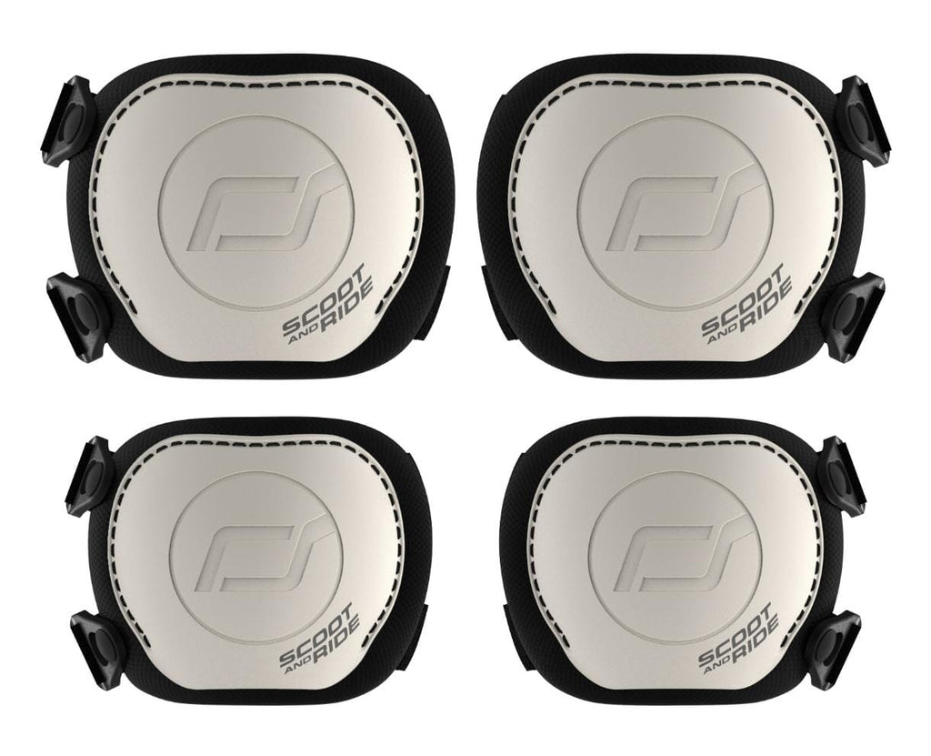 Ensemble de protection S en couleur Ash de Scoot and Ride. Cet ensemble de protection contient deux protections de coude et deux protections de genou. L'extérieur est dur et résistant aux chocs. L'intérieur doux est respirant et s'adapte parfaitement à votre tout-petit. La bande élastique réglable rend également les protections faciles à mettre en place. La taille S convient aux coudes d'une circonférence de 20-27 cm et aux genoux d'une circonférence de 26-33 cm.