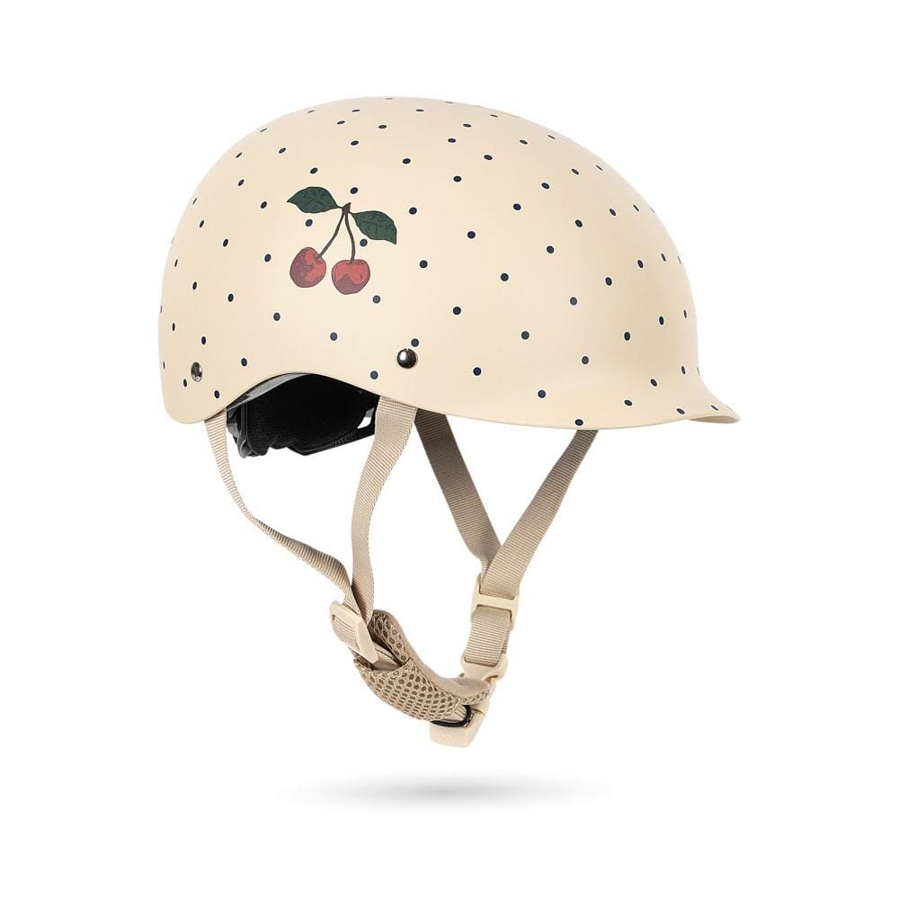 Fietshelm in de print Navy dots van Konges Sløjd. Veiligheid eerst - maar altijd in stijl met de Konges Sløjd fietshelm. Deze helm heeft een praktische maatverstelling met gemakkelijke grip, een vizier voor bescherming tegen de zon en extra zichtbaarheid met reflectoren. Ontworpen met uitneembare vulling aan de binnenkant, ventilatiegaten en een klassieke gesp om hem op zijn plaats te houden.