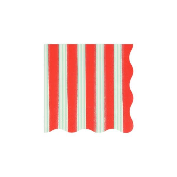 Feestelijk gestreepte servetten van Meri Meri. Deze servetten maken de feesttafel helemaal af. Met een mix van traditionele feestelijke kleuren zoals rood en groen, en een moderne pop van roze en blauw, heb je de vrolijkste en meest stijlvolle servetten in huis. Deze fantastische kleine servetten, met mooi golvende randen, zijn ideaal om te gebruiken voor maaltijden, feestjes of kerstcocktailparty's.