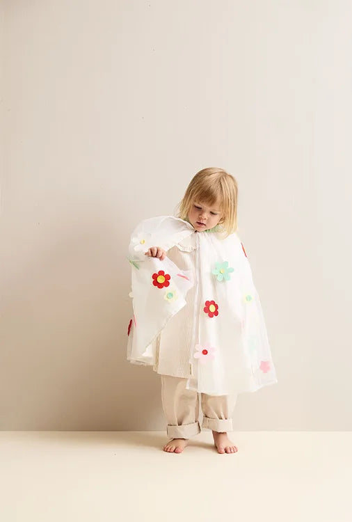 Cette cape de déguisement est parsemée de douces fleurs en feutre, réparties sur une couche de tulle léger. La doublure en coton assure un contact agréable sur la peau, que vous la portiez par-dessus un T-shirt ou directement sur votre pyjama. Les fleurs aux couleurs vives créent un mélange ludique entre déguisement et confort quotidien – prête pour de faux pique-niques, des aventures dans le jardin ou une lecture tranquille sur le canapé.