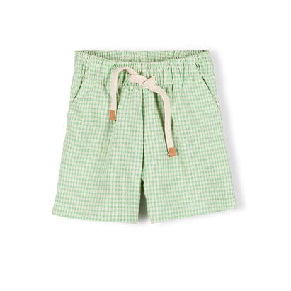 Short in de kleur Apple Checkered van Nixnut. De Bunk Short is een korte broek voor de 'cool kids'! De short heeft een appelgroen ruitje en is gemaakt van seersuckerstof. Hij heeft een fijne elastische taille die verstelbaar is met de koordjes. De short heeft twee zakken. Het leren Nixnut labeltje is bevestigd aan de onderkant van de broekspijp.