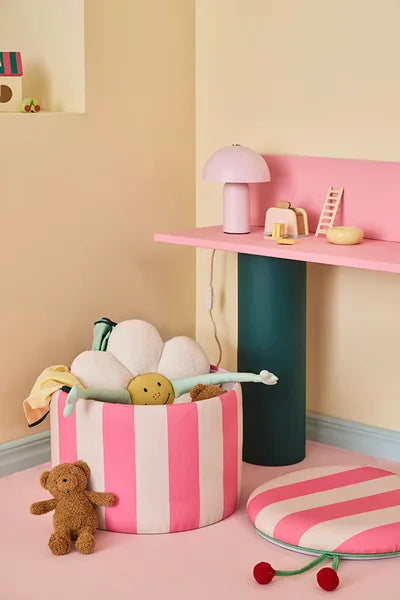 Dieses gänseblümchenförmige Kissen hat zwei Seiten: eine fröhlich und hellwach, die andere ruhig und schläfrig. Je nach Tageszeit (oder Stimmung) dreht man es einfach um, damit es passt. Mit seinen weichen Ärmchen, die herausragen, ist es immer bereit für eine Umarmung, ein Nickerchen oder welche Geschichte ihr auch immer gemeinsam spielen möchtet. Oder vielleicht könnt ihr Verstecken mit eurem Baby spielen.